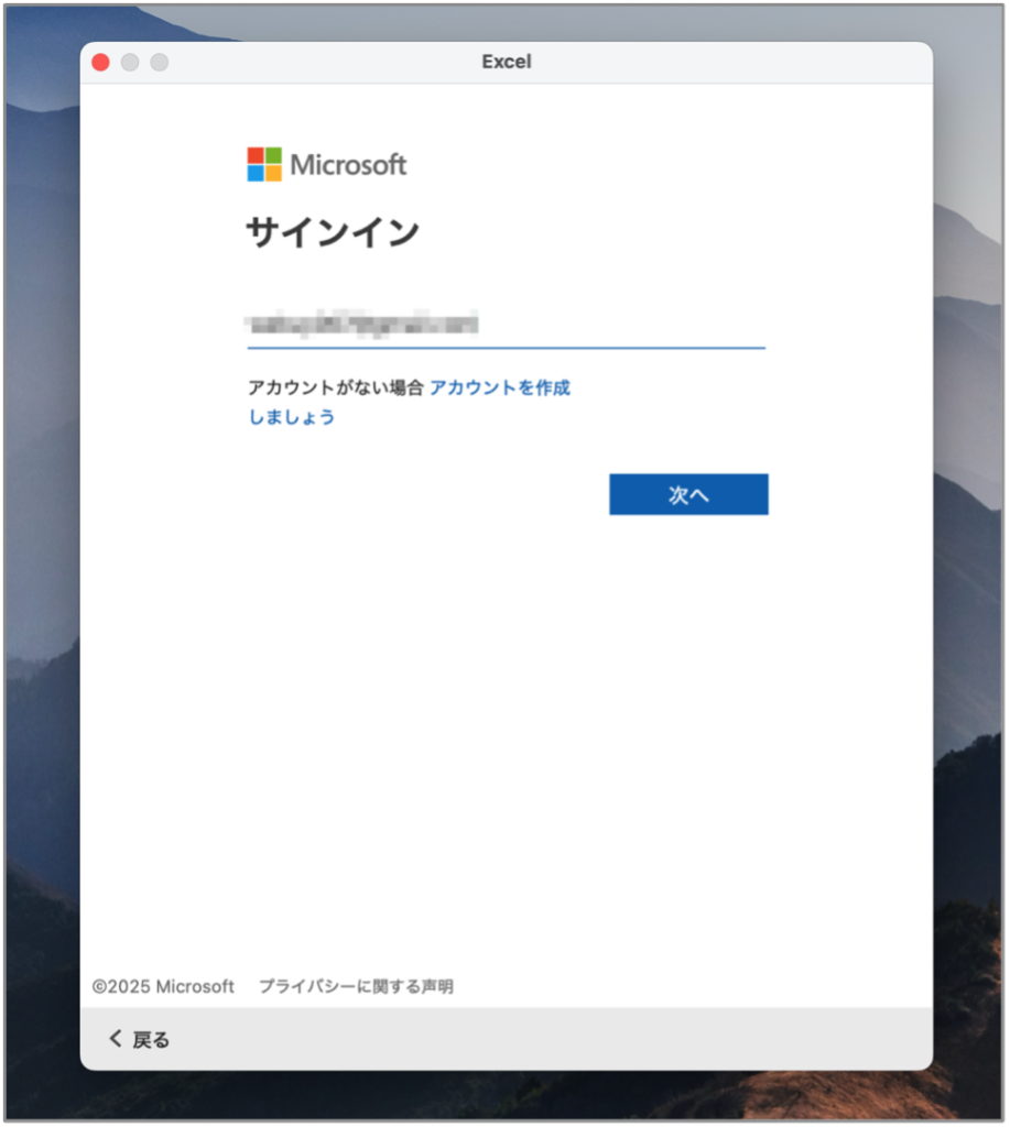 2.購入時に使ったMicrosoftアカウントでログイン