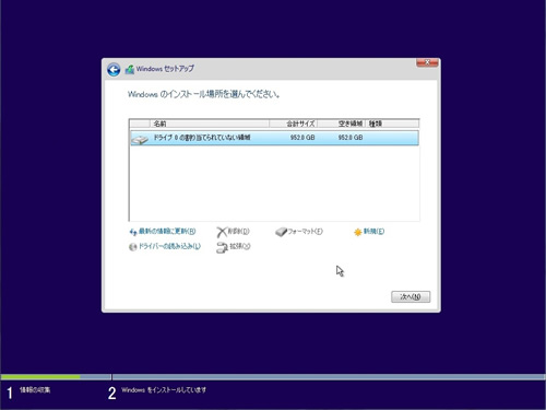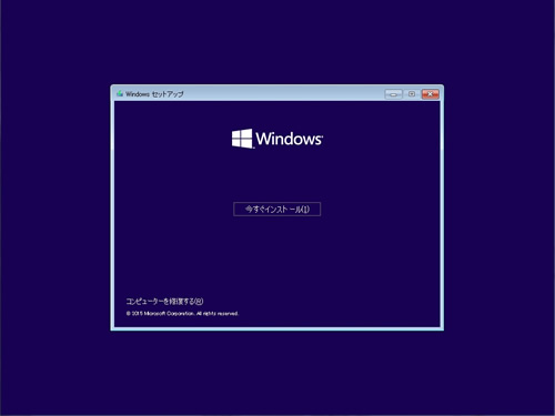 USBメモリを選択すると、Windows セットアップ画面が表示されます。