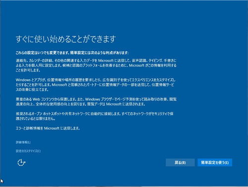 Windowsの設定を行います。PCのご利用において特殊な設定などがなければ、[簡単設定を使う]をクリックしてください。