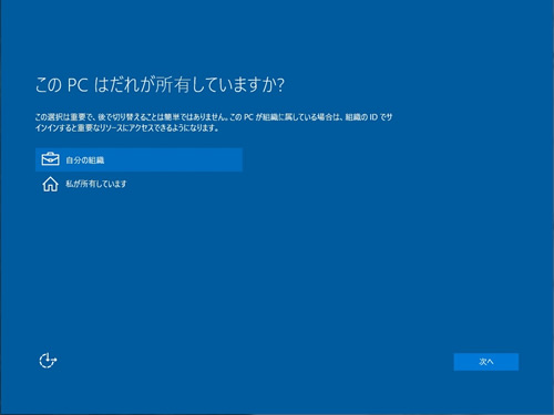 通常は「私が所有しています」をクリックして、[次へ]を押して下さい。