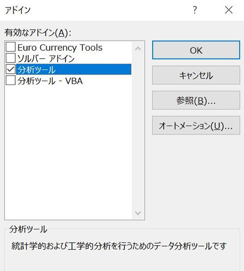 5.「分析ツール」にチェックを入れ、「OK」をクリックします。